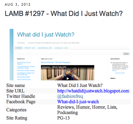I am super excited to announce that What Did I Just Watch was recently featured in The Large Association of Movie Blogs (Lamb). Thank you so much to The Vern from Video Vangaurd and Dusty Wallace from Dusty on Movies! I am very happy to be a member of LAMB.